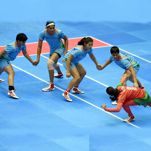 One player, chanting Kabaddi!!! Kabaddi!!!! Kabaddi!!!! Charges into the opponent court and try to touch the opponent closest to him, while the seven opponents make maneuvers to catch the attacker. This is Kabaddi, the match of one against seven, known as the game of struggle.